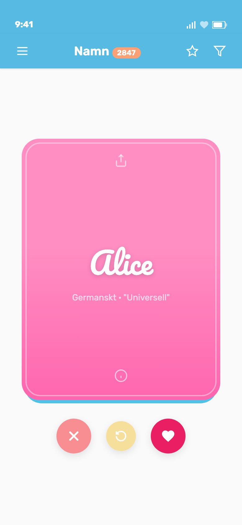 Desliza entre más de 30.000 nombres — rápido, divertido y organizado